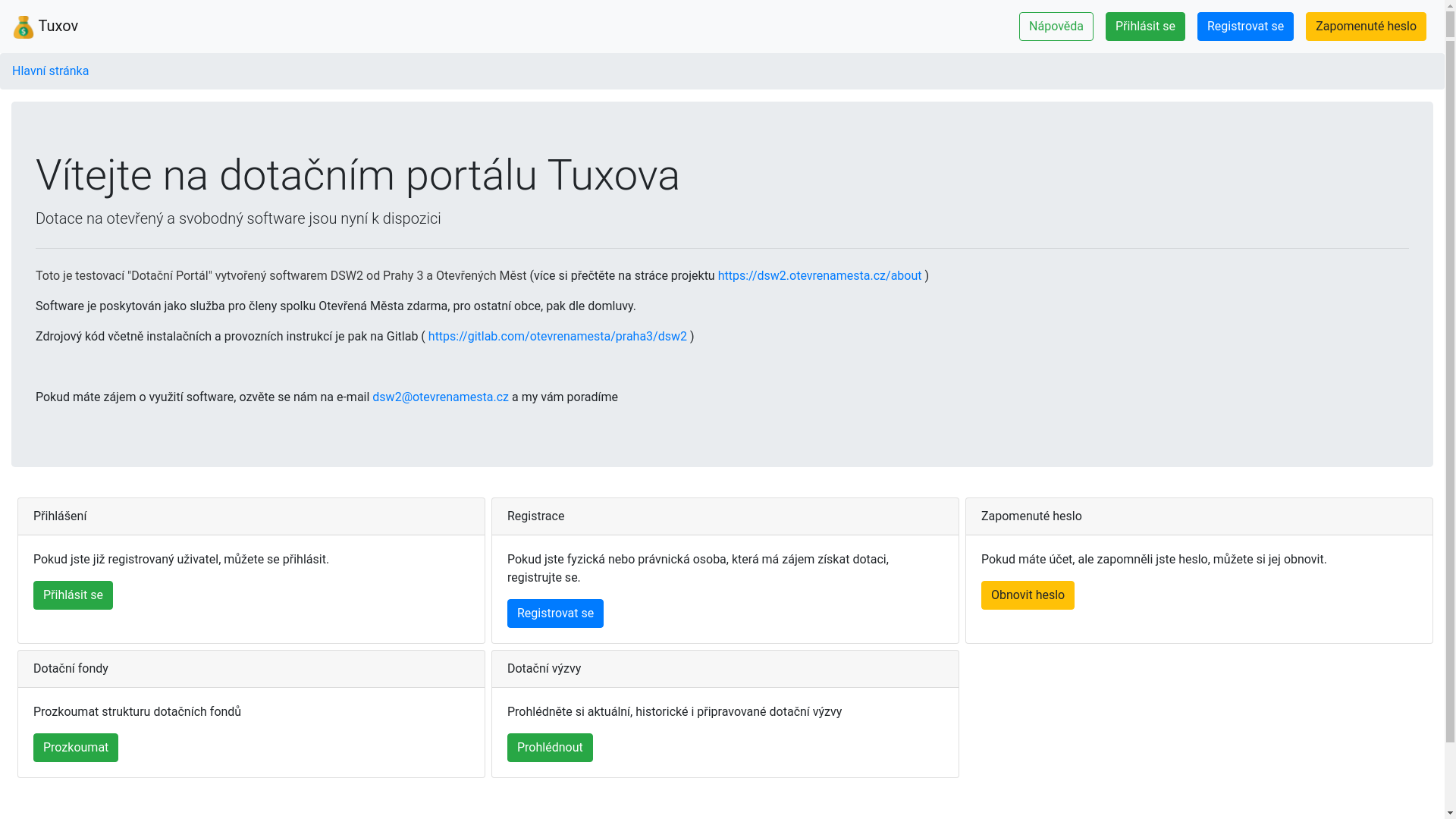 Kompletní Dotační Software si můžete zdarma stáhnout na stránkách Gitlab.