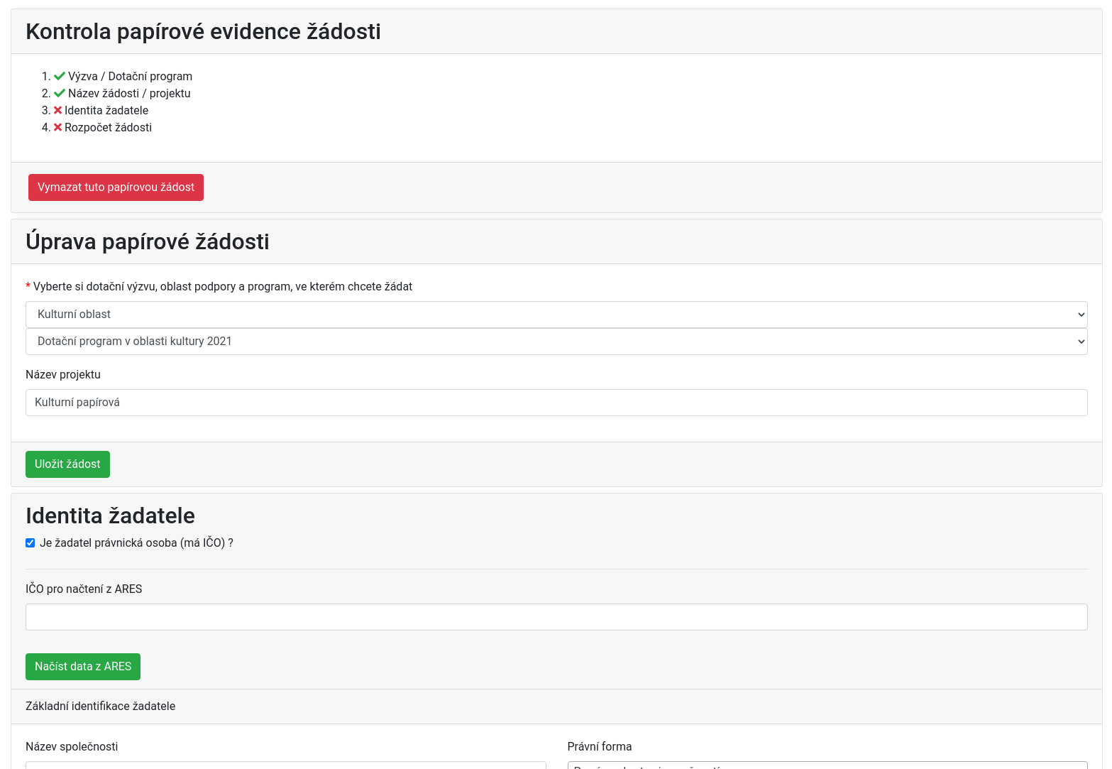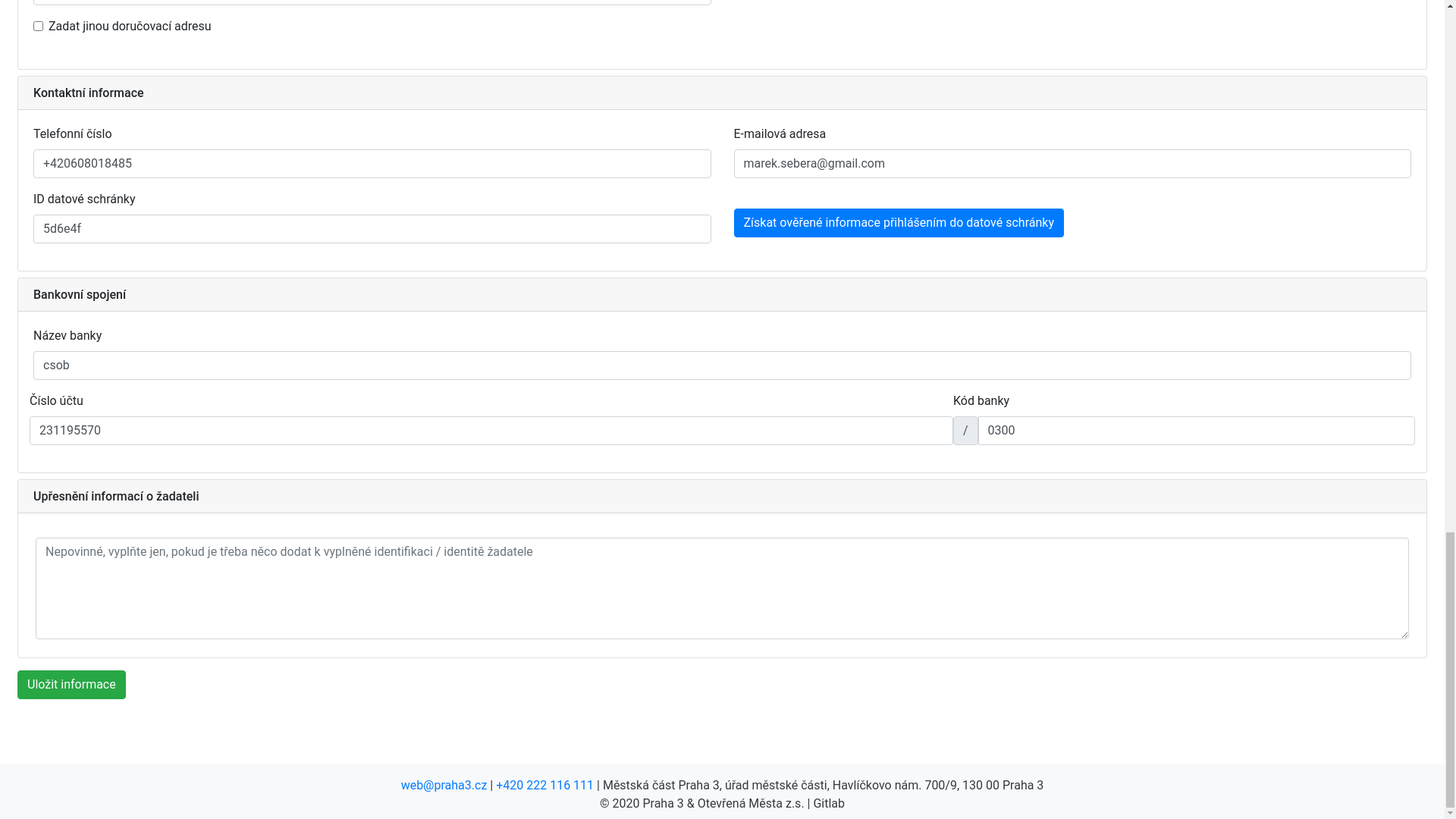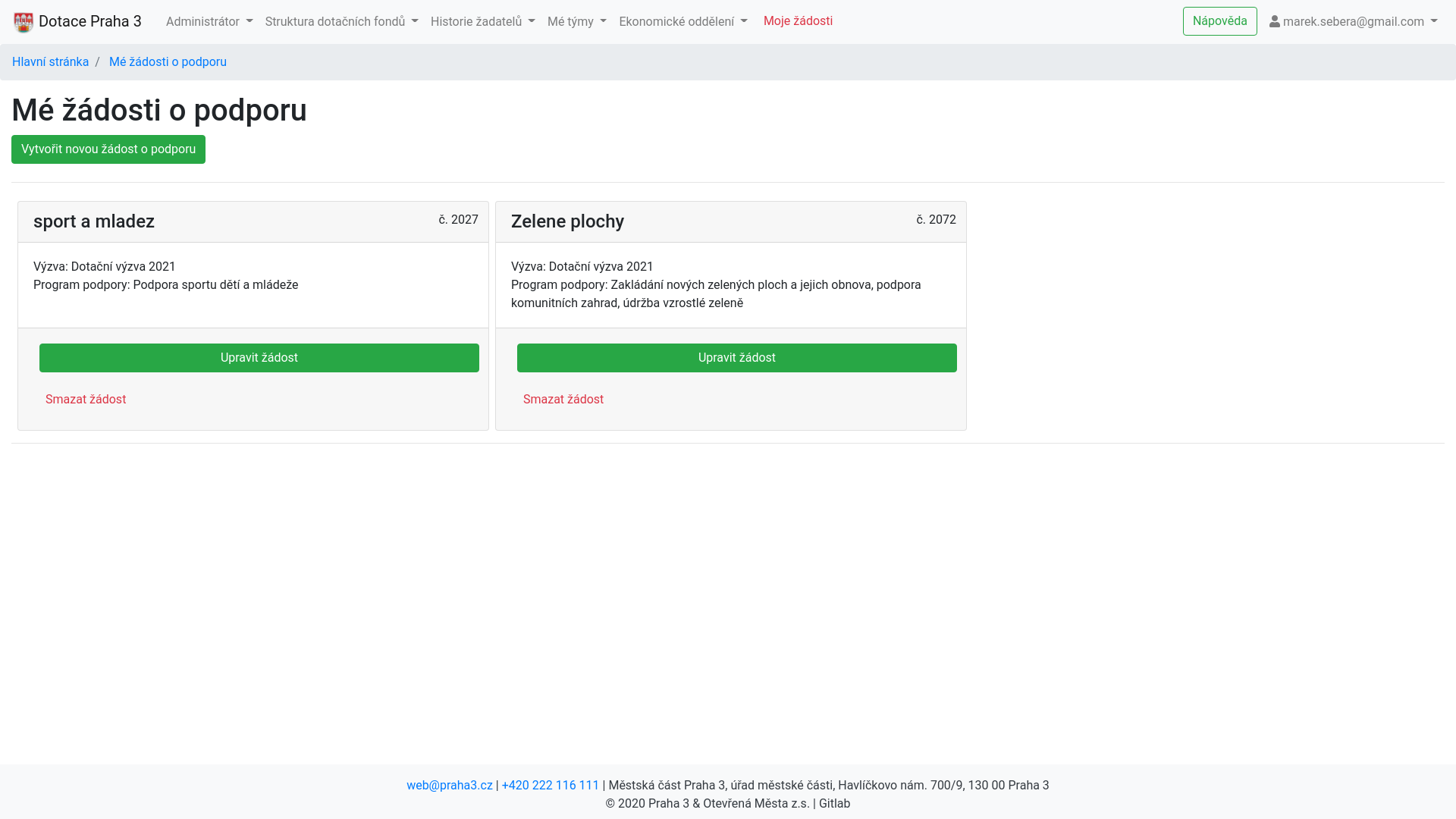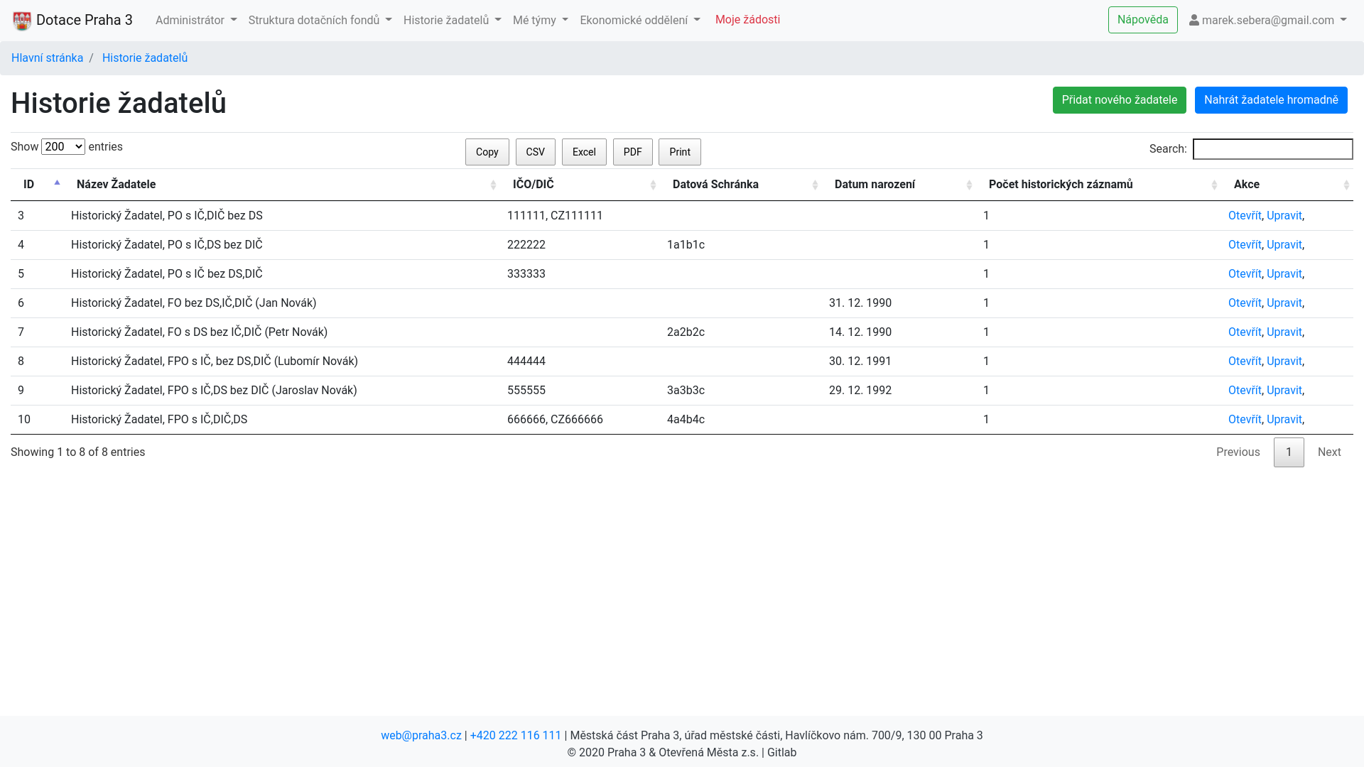 • Možnost úpravy osobních a kontaktních údajů žadatele.