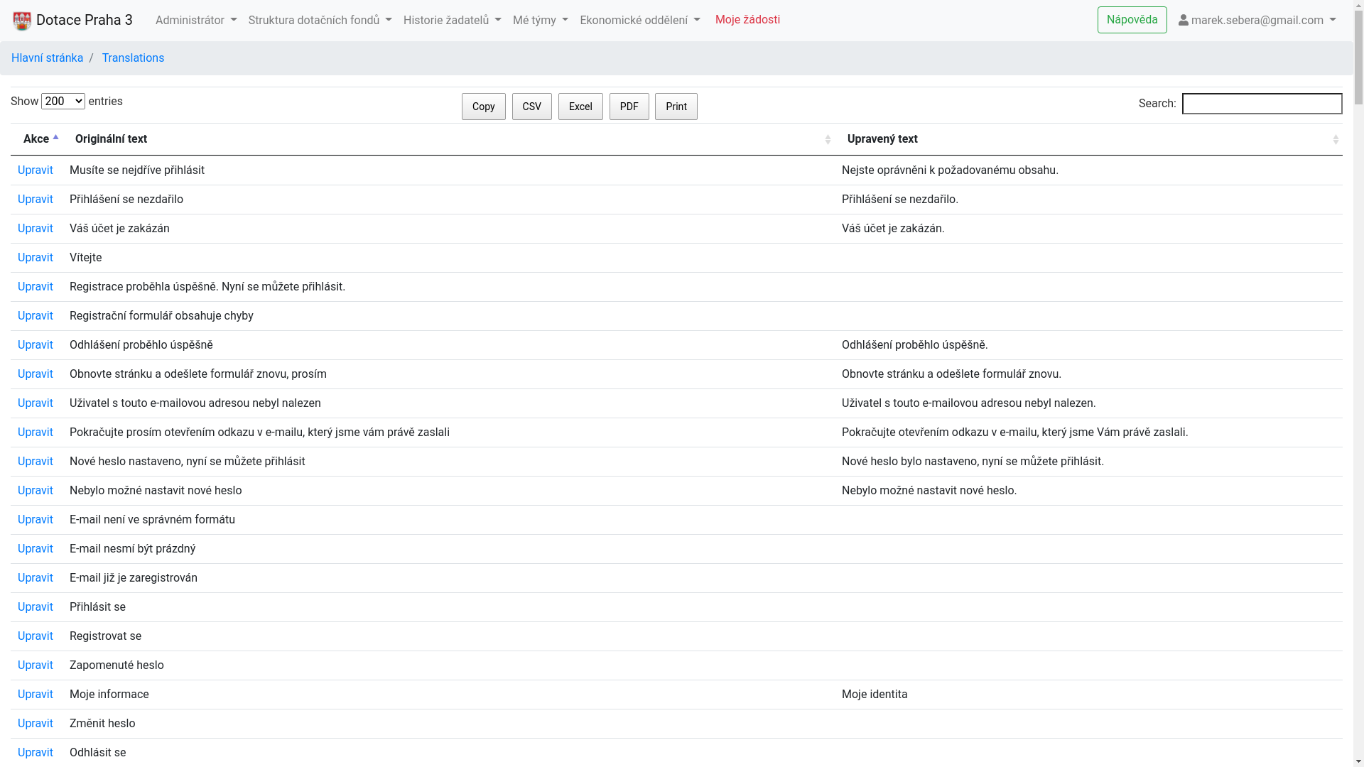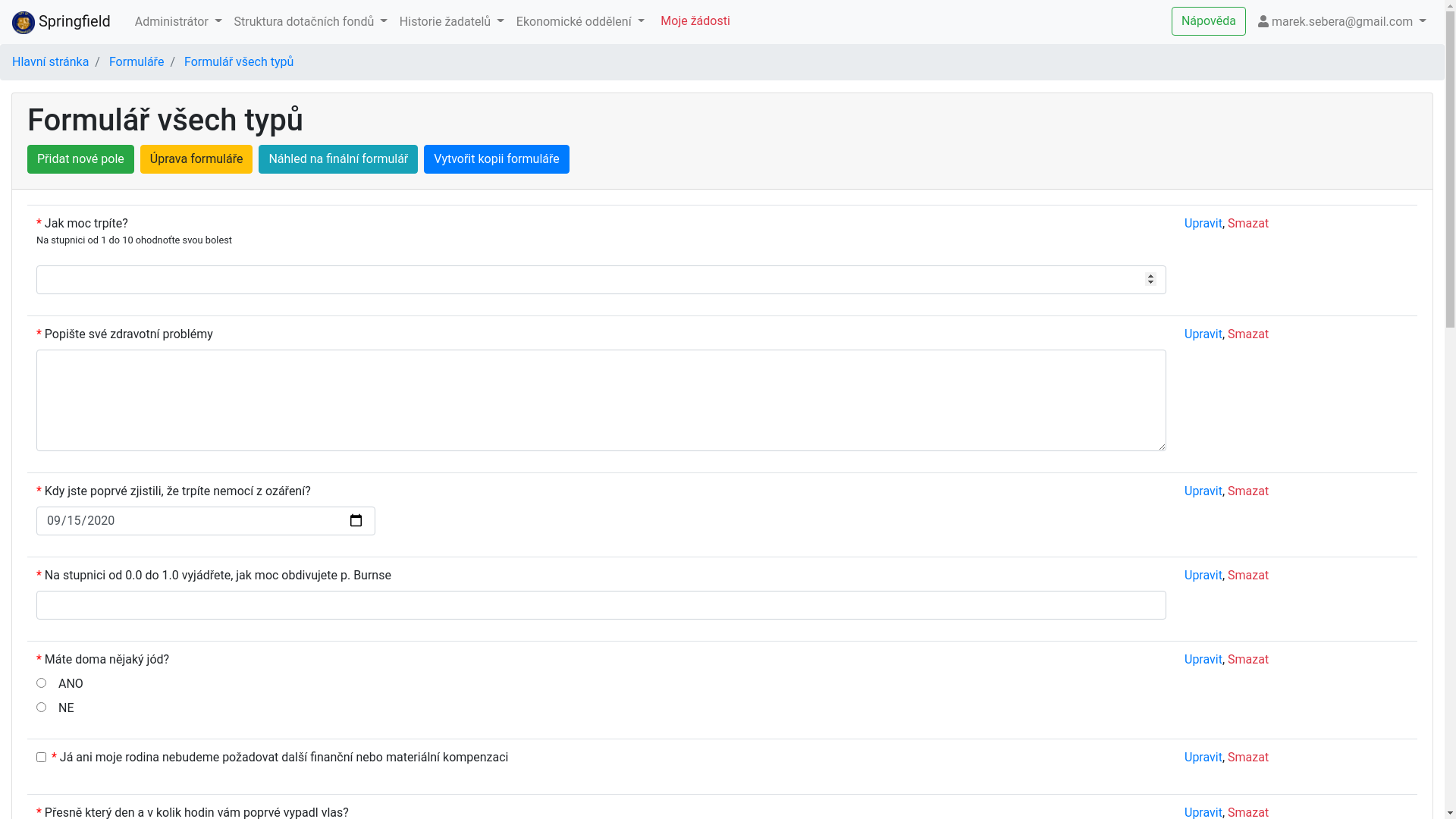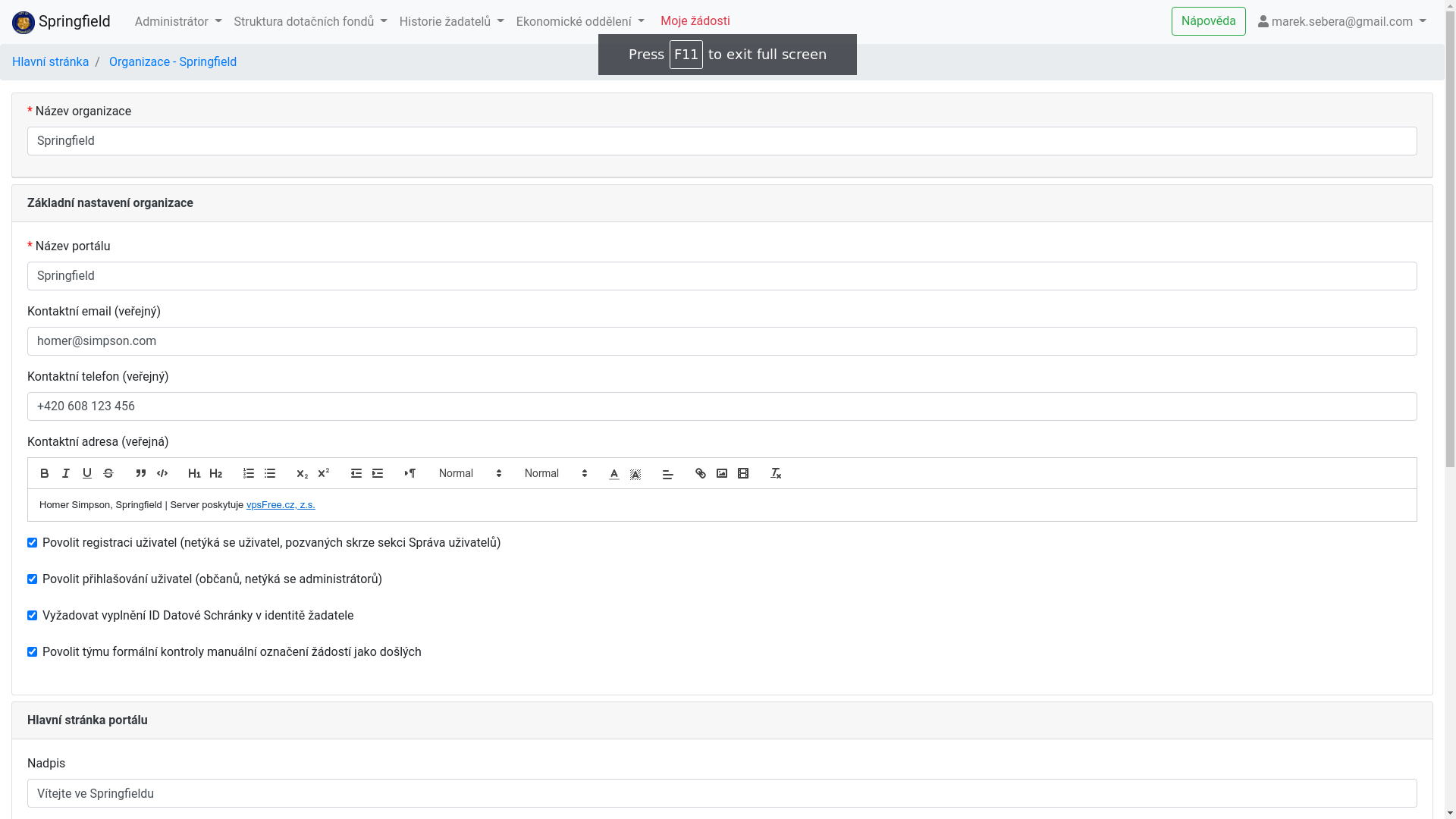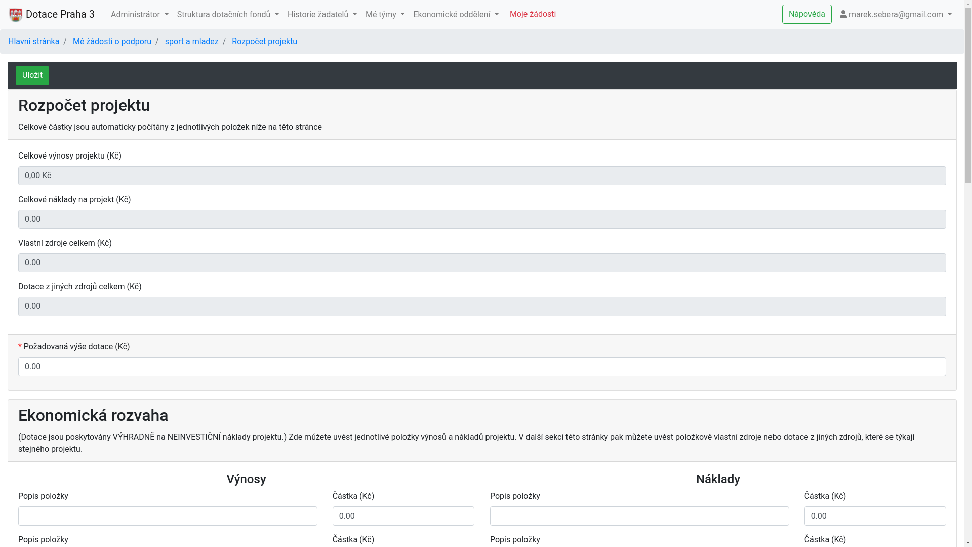 • Možnost úpravy osobních a kontaktních údajů žadatele.