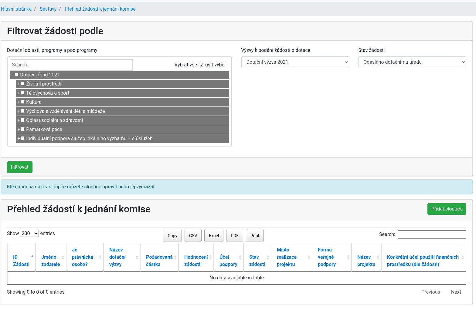 • Trvalý přístup ke všem aktuálním i historickým, rozpracovaným i odeslaným žádostem.