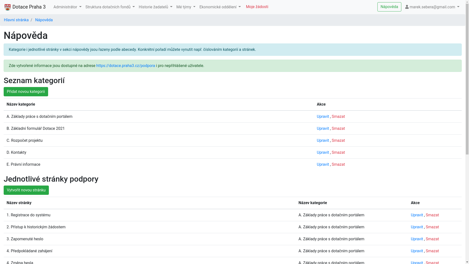 • Možnost zveřejní seznamu všech poskytnutých dotací.